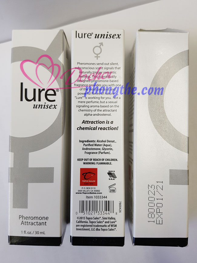 - Pheromone Lure Unisex thế hệ với hương thơm quyến rũ và dễ chịu hơn rất nhiều. Bạn hãy xịt từ 3 đến 5 hơi lên cổ tay, dưới tai hay cổ , những vi trí ôm hôn trước khi đi gặp Nàng hoặc Chàng và hãy để Pheromone làm việc còn lại