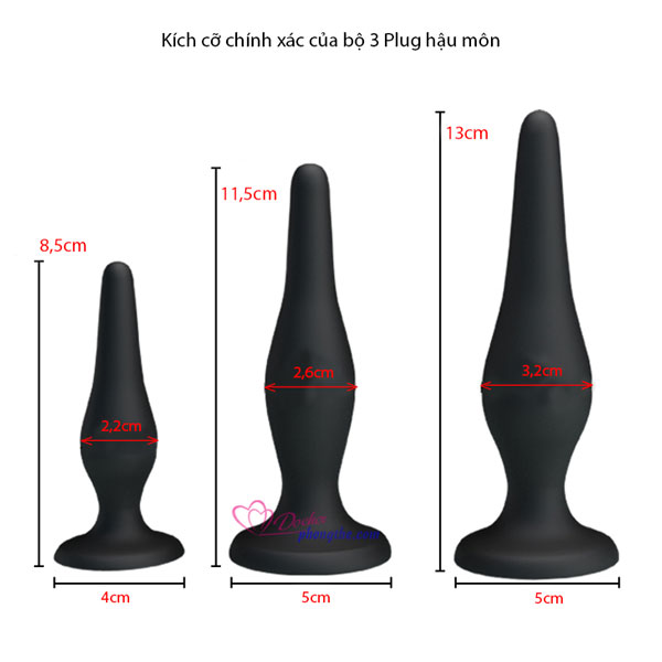 - Bộ 3 phích thông hậu môn được sản xuất từ silicone y tế mềm mại và lành tính, kiểu dáng gọn nhẹ giống cây thông phù hợp nhất cho việc kích thích hậu môn nam hay nữ, đặc biệt hơn cho những cặp đôi đồng tính dùng cho màn dạo đầu khá lý tưởng. Bộ 3 phích thông hậu môn với 3 size từ nhỏ đến lớn vô cùng hữu dụng phù hợp hầu hết cho người dùng và quan trọng nó thực sự làm hài lòng "người chơi" ở mọi góc độ, giúp mở rộng cơ vòng hậu môn tiến tới QHTD qua "cửa sau" được dễ dàng.