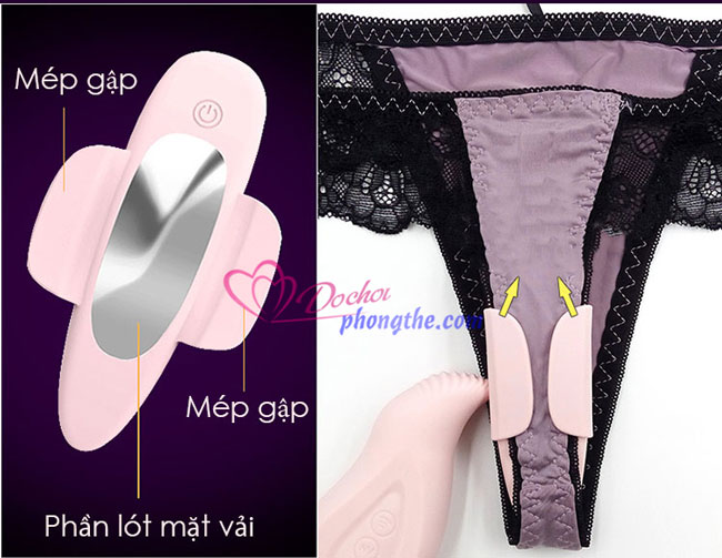 - Trước khi sử dụng đặt bướm rung vào phần giữa đũng quần lót, đặt phần dán phẳng xuống phía dưới sau đó gập 2 mép của bướm rung vào hai bên quần để giữ bướm rung không bị di chuyển và cố định. Sau đó bật nguồn bướm rung và điều khiển rồi mới tiến hành mát xa .