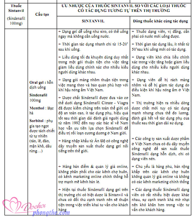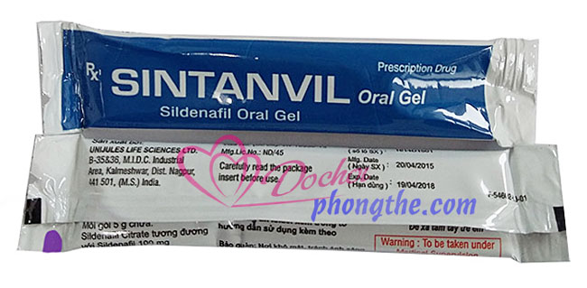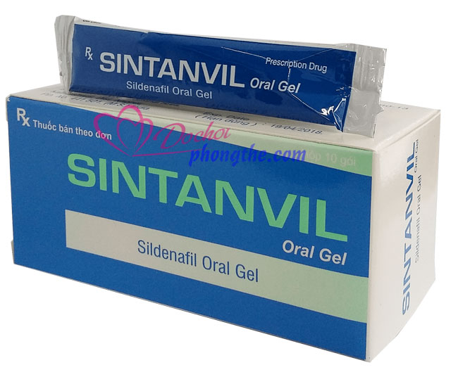 - Sintanvil Oral Gel chính là thế hệ thuốc cương dương Viagra mới của thuốc điều trị rối loạn cương dương ở nam giới, với thành công cùng những phản hồi xuất sắc về tác dụng của Sildenafil dạng lỏng , nhà sản xuất đã đưa ra ý tưởng bào chế Sildenafil dưới dạng Gel. Mục đích là để bệnh nhân dễ dàng sử dụng trong nhiều hoàn cảnh, và giúp phù hợp với nhiều đối tượng bệnh nhân.