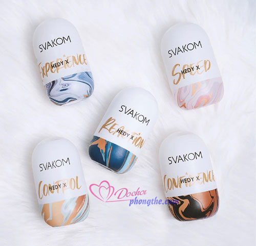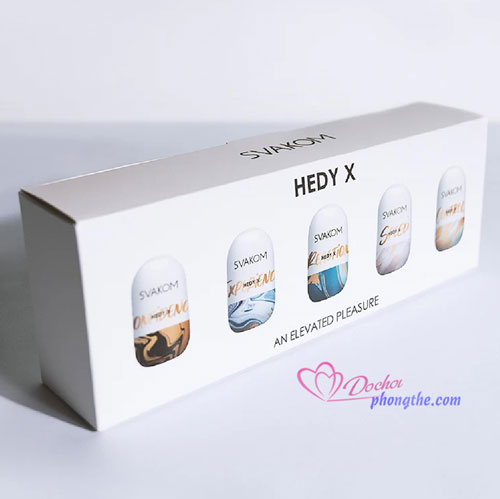 - Svakom Hedy X là trứng thủ dâm dành cho nam tự sướng. Mang thương hiệu Svakom – USA, với chất lượng TPE cao cấp, siêu bền bỉ, siêu co giãn. Đặc biệt, với kích thước siêu nhỏ gọn và ngụy trang tốt. Để dễ dàng mang Hedy X tới bất cứ đâu mà bạn muốn. Sản phẩm bao gồm 5 cấu trúc khác nhau, với mục đích nhằm mô phỏng những cảm giác kích thích dương vật như thật. Dù là bạn muốn được Blow Job, hay muốn “ngâm tôm” dương vật như trong âm hộ. Thì Hedy X đều thỏa mãn được.