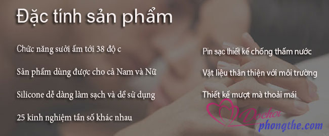 - Tính năng: Kích thích tuyến tiền liệt cho nam giới , kích thích điểm G nữ giới, giải tỏa sinh lý nữ hiệu quả.