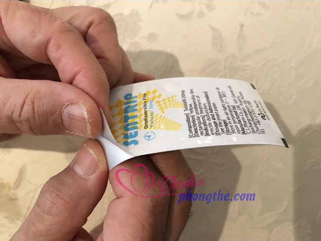 - Người dùng đặt tem Sentrip dưới vòm lưỡi và để tan dần, không uống nước sau khi sử dụng sản phẩm.