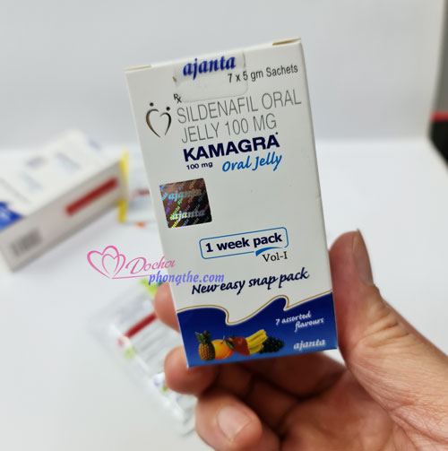 - Thuốc cương dương Kamagra Oral Jelly 100mg được bào chế ra dạng thạch hương các loại trái cây rất thơm ngon chứa 100mg hoạt chất sildenafil theo hàm lượng tương ứng, thuộc nhóm thuốc được gọi là chất ức chế phosphodiesterase loại 5 (PDE5). Thuốc hoạt động bằng cách giúp thư giãn mạch máu trong dương vật, cho phép máu chảy vào dương vật của nam giới khi quan hệ tình dục.