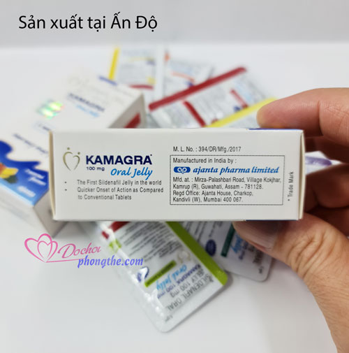 - Thuốc cương dương Kamagra Oral Jelly 100mg thạch trái cây có tác dụng tăng cường sinh lý và hỗ trợ chứng xuất tinh sớm. Đây là sản phẩm của công ty dược Ajanta Pharma Limited – Ấn Độ. Thuốc được sử dụng phổ biến ở nhiều nước trên thế giới.