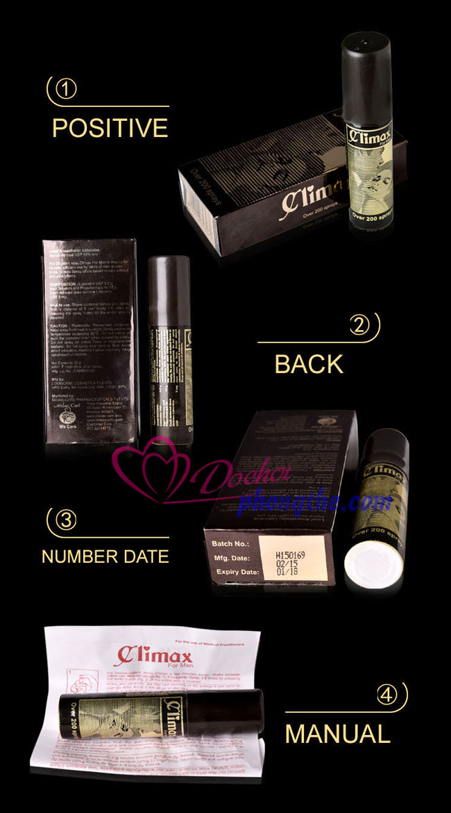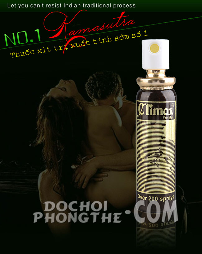 - Thuốc xịt chống xuất tinh sớm kéo dài thời gian quan hệ Climax là dòng sản phẩm chuyên hổ trợ cho những cánh mày râu bị mắc các triệu chứng nan giải là xuất tinh sớm, giúp đàn ông thêm tự tin bản lĩnh trước bạn tình. giúp cho bạn có thêm nhiều thời gian để thể hiện bản lỉnh, đưa bạn tình qua những cơn thoái lạc trong quan hệ và cả hai sẽ được thỏa mãn hưng phấn. đừng nên để tình trạng xuất tinh sớm làm cho bạn chùn bước trước người yêu và làm họ thất vọng về bạn.