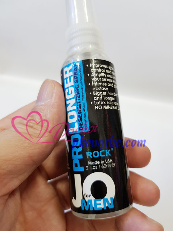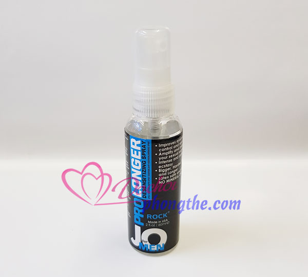 - Thuốc chống xuất tinh sớm dạng phun sương Jo Prolonger spray là dòng sản phẩm của hãng JO - Mỹ đạt tiêu chuẩn FDA Hoa Kỳ .
