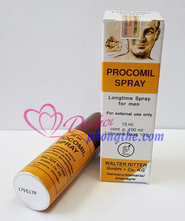 Thuốc xịt kéo dài thời gian quan hệ của đức. Thuốc xịt chống xuất tinh sớm Procomil. Chai xịt quan hệ lâu ra tot nhat. Thuốc xịt tình yêu.Có nên dùng