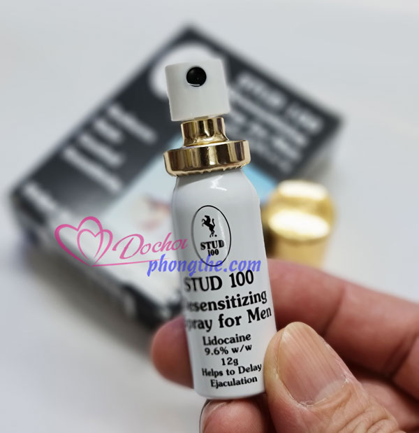 - Chai xịt Stud 100 nắp vàng được thiết kế nhỏ gọn, rất tiện dụng và có thể mang đi đến bất cứ đâu. Với thành phần chính 9,6% Lidocain, mát , không mùi vị, kết cấu dạng vòi xịt nhẹ nhàng, chỉ cần lắc đều dung dịch và xịt nhẹ lên “cậu nhỏ” khoảng 5 – 10 phút trước khi “lâm trận”, nam giới hoàn toàn kiểm soát được tình trạng xuất tinh sớm một cách hiệu quả, kéo dài cuộc yêu khiến nàng cảm nhận từ từ những dư vị ngọt ngào, thú vị, lãng mạn.
