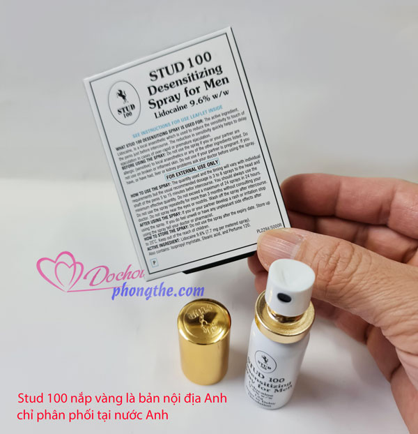 - Để khắc phục tình trạng xuất tinh sớm này, nhiều nam giới trên toàn thế giới đang tin tưởng sử dụng chai xịt chống xuất tinh sớm Stud 100 nắp vàng (còn gọi là Stud 100 UK) – một sản phẩm nhiều ưu việt của Vương Quốc Anh. Sử dụng Stud 100 nắp vàng giúp đấng mày râu trở nên tự tin, mạnh mẽ, sảng khoái hơn hẳn. Những rắc rối, bi quan về tình trạng xuất tinh sớm trước kia chỉ còn là quá khứ không bao giờ có cơ hội quay trở lại.
