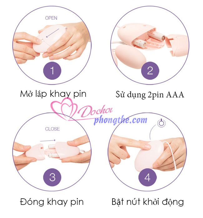 - Lắp 2 pin AAA vào điều khiển sau đó bật nút nguồn để khởi động trứng rung. Tiếp theo đó là bật nút điều khiển để rung từng quả theo sở thích nên chọn chế độ rung phù hợp và bắt đầu kích thích những điểm bạn thích cho tới khi đạt được thỏa mãn thì dừng lại.