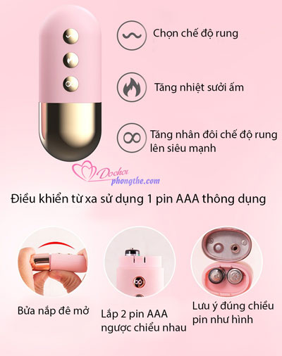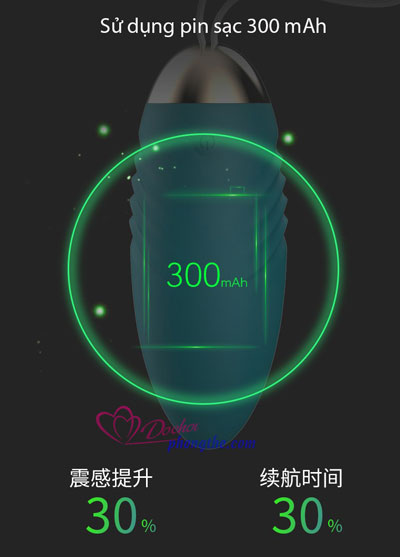 - Pin:   Pin Lithium polymer cho trứng rung và pin AAA cho điều khiển.