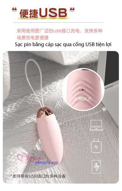 - Xoay phần nắp màu vàng ở điều khiển để lắp pin, đối với trứng rung cắm sạc vào lỗ nhỏ có in chữ "DC" để sạc pin. Thời gian sạc 1h30.
