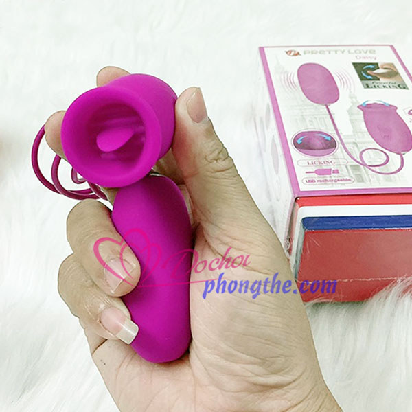 - Trứng rung Liếm 2 đầu siêu sướng PrettyLove Daisy là sextoy được thiết kế giúp chị em thoải mái hơn khi tự sướng kích thích các vùng nhạy cảm trên cơ thể. Sản phẩm có 2 đầu khá đặc biệt, một đầu trứng rung masage ngưc, âm vật hay đi sâu bên trong kích thích điểm G, một đầu nữa được thiết kế như lưỡi liếm sẽ vô cùng kích thích khi vừa rung vừa liếm âm vật hay các phần nhạy cảm khác.