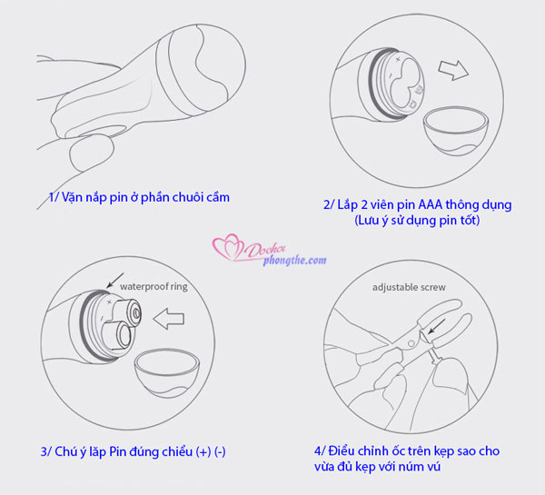 - Sau khi mở hộp, bạn cần lắp 2 pin AAA vào bên bộ phận điều khiển của sextoy nữ.