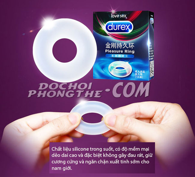 - Vòng silicon Durex Pleasure Ring mềm mại, đặc biệt ôm khít ngăn chặn dẫn tinh về đầu dương vật chính vì thế các anh có thể gia tăng và kéo dài thời gian lâm trận của mình. Ngoài ra việc sử dụng vòng cock ring Durex chống xuất tinh sớm giữ cho dương vật của các anh cương cứng, khỏe mạnh hơn rất nhiều.